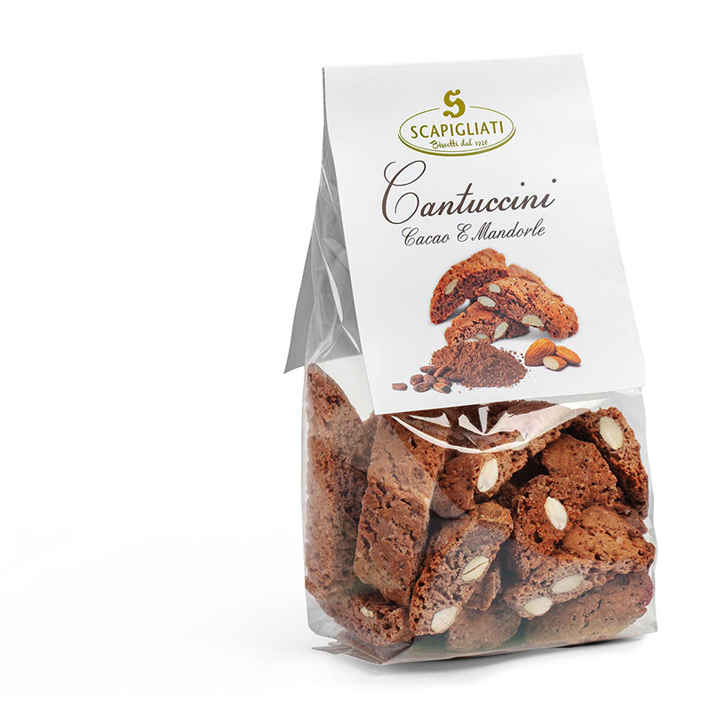 Cantuccini cacao e mandorle La golosa variante del calssico cantuccino alle mandorle, con impasto arricchito di ricco cacao in polvere. TORNA AI CANTUCCINI